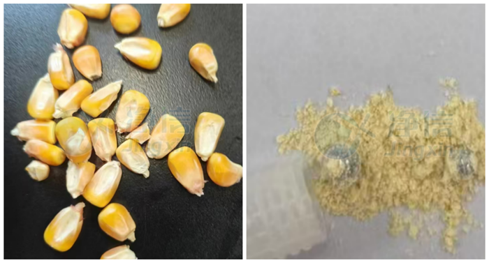 干玉米研磨前后對(duì)比,短時(shí)間內(nèi)將玉米粒研磨成粉狀
